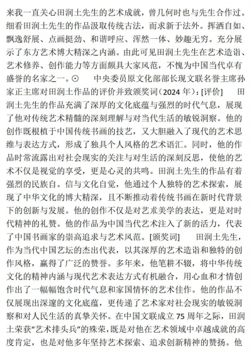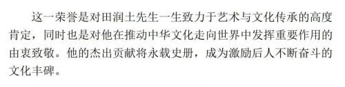 艺无止境,游于艺不知老之将至及;道法自然, 事于道富贵于我如浮雲。自古所贵者精氣神;从来所尚者儒釋道。此士大夫脩身之所為也。若狂草之矫变不测,飛動腾躍,想象之竒,造化之妙,直与天地萬物通,乃与神明靈感應,情感之驚愕熾烈,意象之诡谲玄幻,筆觸之風采墨韻,審美之表现构成,内蕴之深邃丰贍,氣息之现代引領,哲學之視覺表達,文化之自信彰顯,傳统之文脈賡續,革新之跨界融合,民族之情懷抒發,国家之實力擔當,學術之國際視野,地域之世界共振,又豈精氣神儒釋道所可限量。此當代公共藝術之壯舉也。锺哉儀哉,达情寄兴,古今通融,其感也深,其鳴也廣;幸哉至哉,進學弘藝,上下求索,其養也怡,其年也永。