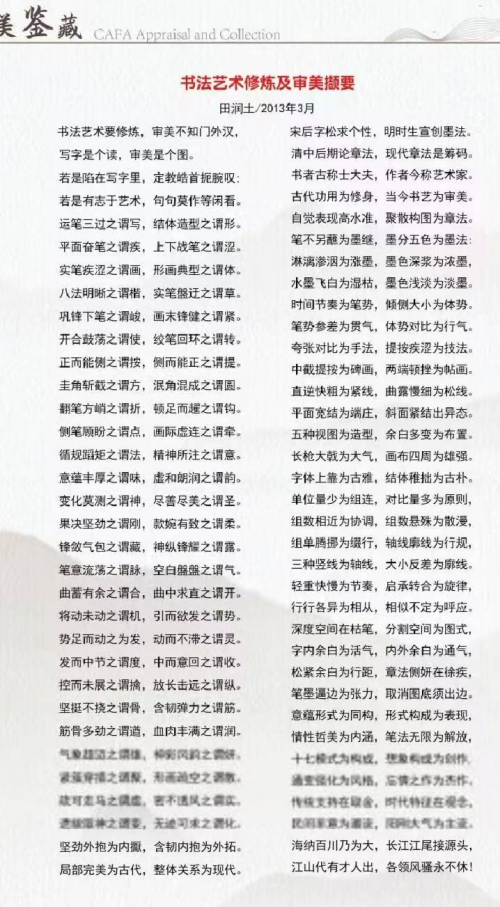 傳统书法審美观到当代书法艺术观,逐级而上,分层而论,用志不分連跳禹门三级浪一浪更比一浪高,精诚所至飛渡蓬莱三僊山一山更比一山竒:或功性两见,形神兼備,動輙合法,不落窠臼,然徜徉點畫,茫然篇章,古風猶存,流扵平庸,与古雷同,艺术无门;或写我之形,传我之神,然法外求法,又被法缚,成于一格,多变不能,必然僵化,与己雷同,浪得榮名,古添一人;或脱形换影,神乎布白,解放笔觸,自覮表现,破立承领,古今通融,審美意境,艺术提升,風格多变,专精多能,筆法精髓,藝術元素,古典神韻,现代构成,妙合無垠,无有雷同,赫然原创,斐然大成,煌耀國光,書藝同登。