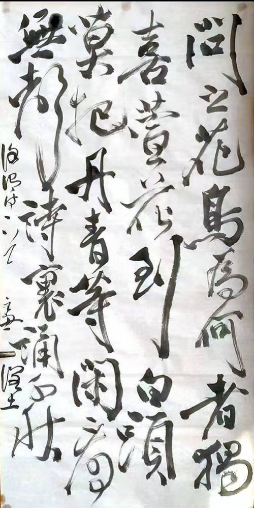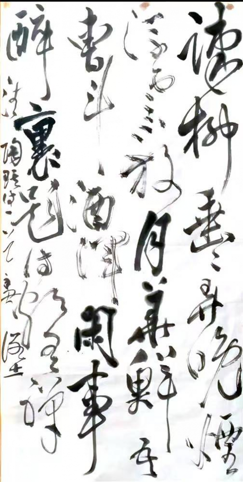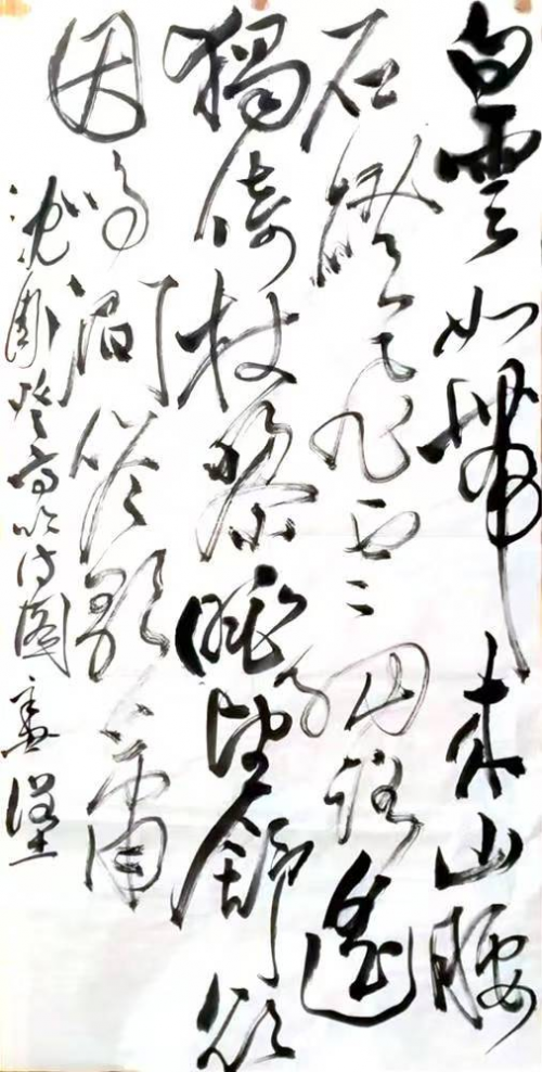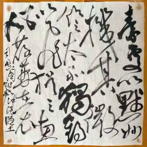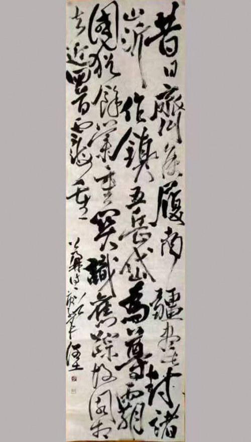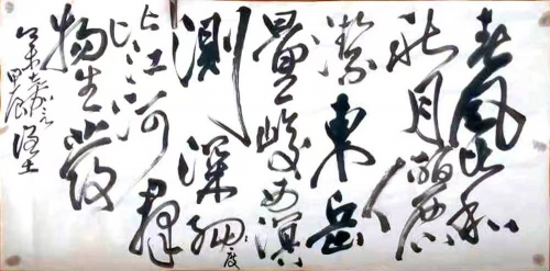 艺术造诣较高的狂草作品必然是蕴含丰富深刻的文化内涵和具備圆融深厚的艺术脩養,既有根植经典的优秀传统神韻,又有突破標新的時代引领氣息,并与狂性唯我適性忘我的精神境界相契合,滌荡汹湧澎湃喷薄欲出的艺术构思,迸发妙機其微瞬息萬變的艺术靈感,闪动多维的艺术元素,轻拈娴熟的艺术手法,锤煉精彩的艺术语言,再现的丰富的艺术想象,表达强烈的艺术个性,抒发深广的艺术情怀,彰顕独特的艺术观念,开拓絢爤的艺术视野,探賾濃厚的艺术趣味,展现卓越的艺术表现力,营造震撼的艺术感染力,焕发鲜活的艺术生命力,从而达到高妙的艺术境界,带来高级的艺术享受。