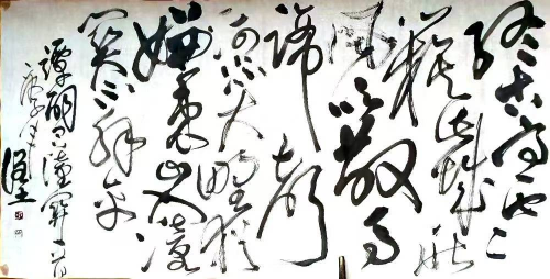 狂草是人类以徒手线形式运用连续书写技法表达客观事物并表现审美情感审美理想审美判断审美想象的最纯粹最高级的审美创造活动,更蕴含着笔下只畏龙蛇走狂飚为我从天落却又深湛廣大的文化内涵和草圣狂来轻世界字成其妙初不知而直指心源的精神写照与挥毫落纸如雲烟滿座失声看不及而汪洋恣肆的浪漫主义情怀 。 狂草是书法艺术的最高表现形式,正是由于其高难性决定了对创作者在道与技、情与韵、法与意、功与性、形与神、学与养等方面的综合修炼必须炉火纯青才能在创作中左右逢源游刃有余有感即应端倪莫测,既是艺术天赋的试金石,更是艺术才华的聚宝盆。 狂草是草书中的精神贵族,强烈的个性精神是它的内核,在决荡与震烁中抖擞出非凡气概,在万象浮动遠引若至与靈感倏发臨之已非时才能“妙手偶得”,在解衣盤礴真力彌滿与契通神明即之愈希时方有“神来之笔”,法天则霹雳狂飚,法地则山崩石裂,在河则怒涛翻湧,在岳则懸崖险绝,在道则放浪不羁,在儒则放膽激进,在释则狂禅之狂,在人则酒神之狂,形狂不为狂,神狂乃真狂。