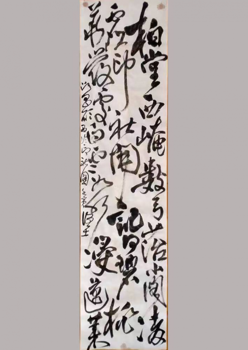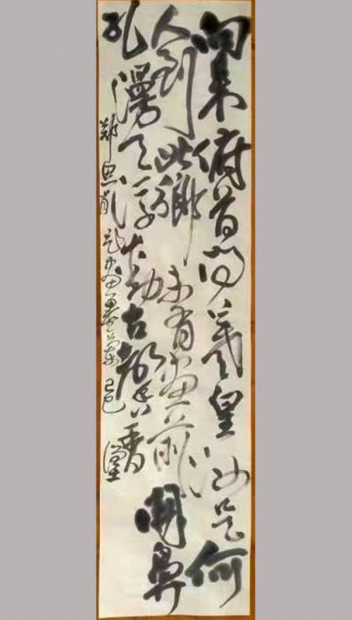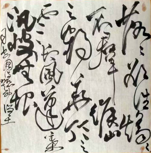 毕加索初观草书而震惊,曾自言若生中国必为书家而非画家,以为憾事,是华夏之书法早抽象于欧美之艺术,信不虚也。試觀《全唐詩》赞书法之篇皆為草书而作,唐雖楷法造極 然詩赞阙如,怪哉何哉?狂草波澜壮阔激電奔雷神秘莫测氣势恢宏精彩绝倫之藝術境界,却恰恰是在酒神颠狂状態下非理性造就并将创造美与人性美表现得淋漓盡致,猶以旭素天赋禀異,“以狂继颠”,双峰竝峙,榮耀中唐,草聖之作,绚麗璀璨,得法外之竒妙与氣概之震憾名動四方,忽見師作縱横不群迅疾駭人,驚心動魄如大海之狂飚,激情四射如火焰之燃燒,兼好事者作歌贊之,動盈卷軸,良有以也。