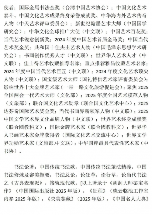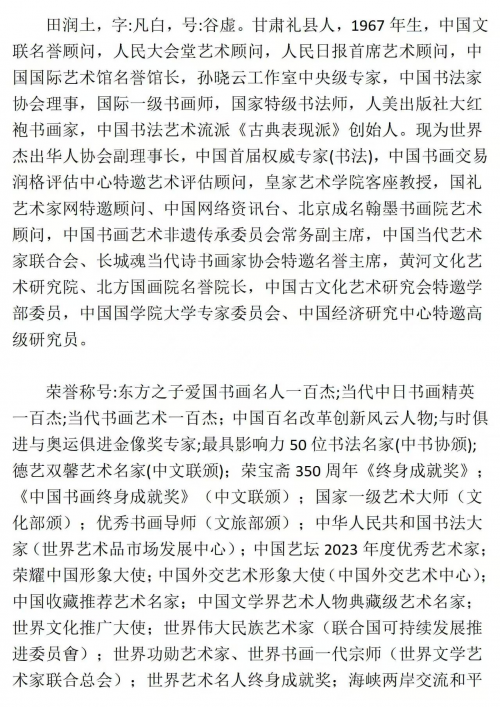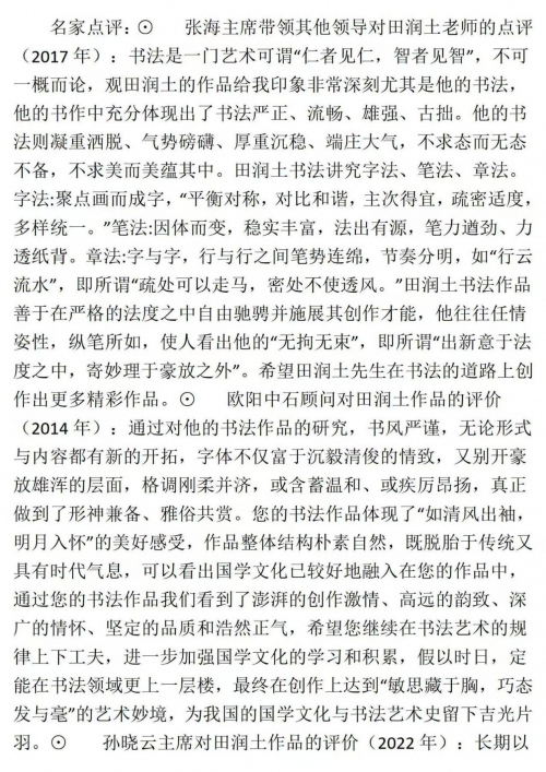 与古为新,日新日日新,法外变法,非法非非法,与时俱进,爰開新境,生生不已,变化無窮,因寄所託,艺术赋形,文化厚度,艺术高度,審美廣度,表现强度,形式新度,构成力度,精品意识,原创意识,书法意境拓展化,艺术理念前沿化,书法審美当代化,书法系统更新化,书法创作现代化,书法气息時代化,书法面貌艺术化,书法神韻古典化,书法艺术个性化,书法欣赏国际化,掘文化之寶藏不遺餘力,譜藝術之華章大有可為,葆书法之神彩彪炳,昭艺术之魅力无窮,取之不盡,用之不竭,如易之广,如海之博,则艺林瑰寶猶日月之經天歷久而弥新,书苑竒葩比江河之緯地源遠而流長。