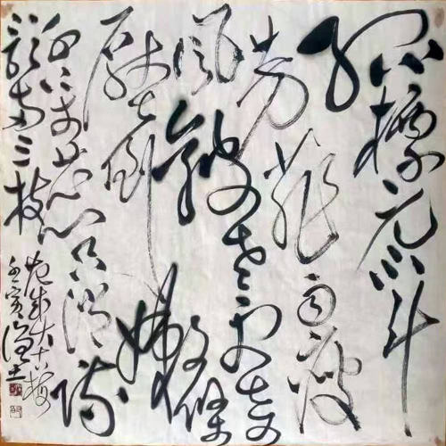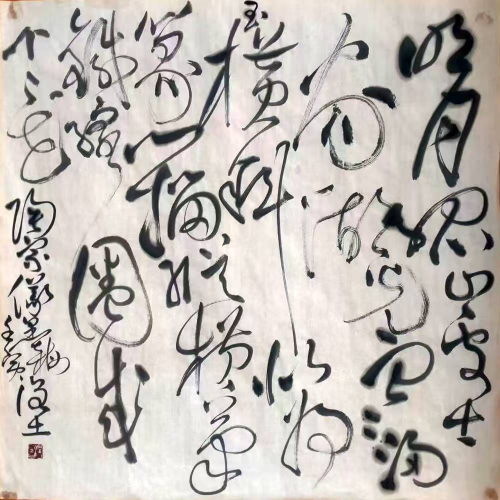 怎奈斗轉星移九十年代,抽象艺术席卷全球,现代艺术门类,否认传统书法:文化博大精深,艺术高度欠缺。晴天霹靂,传统之殤?国人耿耿,书界忡忡!慨数千年引以為豪之传承,竟一時無以自證而破防。煌煌书法界,廖廖艺术家!书法乃本土文化,艺术是泊来文化,彼此相撞,龃龉不合亦是现實,雖有交集不能并集,现代艺术之要求如何達到,当代之书法难题如何破解,面直历史使命重任在肩,当代书法研究應運而诞:须遵循现代艺术原理,构建当代书法艺术理论體系,釐清当代书法之概念,规范審美范畴之内涵与外延,重组当代審美秩序,提煉艺术構成与表现之共性,以形成適用書法之艺术规律,使传统书法向当代书法转变,与现代艺术接轨,实现书法之现代化。 历史之抉擇,志士之共识,先行者集思廣益,践行者探索緫結:增大艺术元素,隐退具象功能,艺术炬目審视书法,艺术表现涵盖书法,行草狂草,天生麗質,前景廣擴,擅于表现,特别狂草本具抽象性,再融入艺术審美元素之丰富性,加大笔觸表现力,著意于虚實布白空间構成,墨色的層次旋律,大量使用对比夸張的艺术手法,整体篇章形成强烈的反差与视觉冲击力,从而感受到强烈的艺术震撼力。然而静態書體法度端嚴點畫精美封闭性排他性極强并不適合走艺术化之路,如若稍加艺术表现就會東倒西歪破坏书法審美秩序失去古典之神韻,而新的審美秩序因单字点画结构由法度控制不具备开放性不能与艺术表现形式构成共生故难以建立,被大衆以“丑書”视之而厭棄,小楷则萬萬不可。動態書體中的狂草自由度很高开放性包容性極强,可谓舍我其谁,中流砥柱,其容量之大完全可以囊括艺术之重要元素并加以消化发扬,其狂草精神得艺术精神之助猶如猛虎添翼更加多元和开放,使传统狂草向当代狂草转变,从而建立一种全新的審美秩序和艺术表现系统,實现共生,在固守古典神韻的同時增高艺术峰值,外族赞赏,国人陶醉,皆大歡喜,广泛共鸣,然狂草对学力天赋要求甚高,成者鳳毛麟角,如若功力不濟再以艺术元素霍亂颠狂,不但没有建立起新的審美秩序,还打破传统審美秩序,失去传统神韻,这种以牺牲書法为代價的所谓艺术真是自毁長城,自诩長城,狂草雖然开放包容,但不能对艺术表现生吞活剥不烹而食,衆皆厭棄,亦目为“丑書”。所以,没有现代艺术思潮的冲击就不会产生“丑书”,“丑书”是当代书法创作失败的畸形产物。当下,書法的艺术化观念给传统書法带来了生机与成功,也带来了危险与失败,是一把雙刃剑,所谓成功者即既有传统之神韻,又有艺术之表现,失败者即因所谓艺术表现而丧失书法之神韻,所以固守传统筆法与神韻,是国人广泛共鳴的理论基础,融合艺术之构成与表现,是国际广泛共鸣的理论基础,说到底书法之艺术表现是以传统书法为基础,要求既精传统筆法神韻又擅艺术化构成表现,创作难度遽然加大,反过来说艺术表现是当代书法之追求,但也要警惕并剋制它带来的破坏性与颠覆性,應以当代书法艺术之理论为指导,稳定当代书法艺术的審美秩序,在固守传统神韻的基础上择善而從艺术表现。